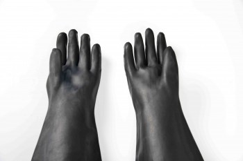 Heavy duty rubber glove, made of natural latex. 32”length(82cm), smooth finish, seamless, cotton lining, left/right hand, 800g/pair, 50 pairs/case. Using for Isolater, dry box, blast cabinet, etc.