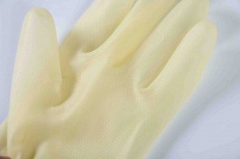 Sanitation glove, made of natrual latex, length 32-36cm, textured palm for anti-slip, waterproof, anti acid and alkali, non-toxic.
