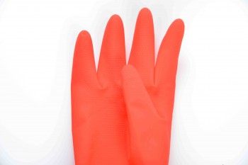 Sanitation glove, made of natrual latex, length 32-36cm, textured palm for anti-slip, waterproof, anti acid and alkali, non-toxic. Mainly used for food processing, hotels, family kitchen, etc. Color: red, yellow, orange, rose, nude, etc.
